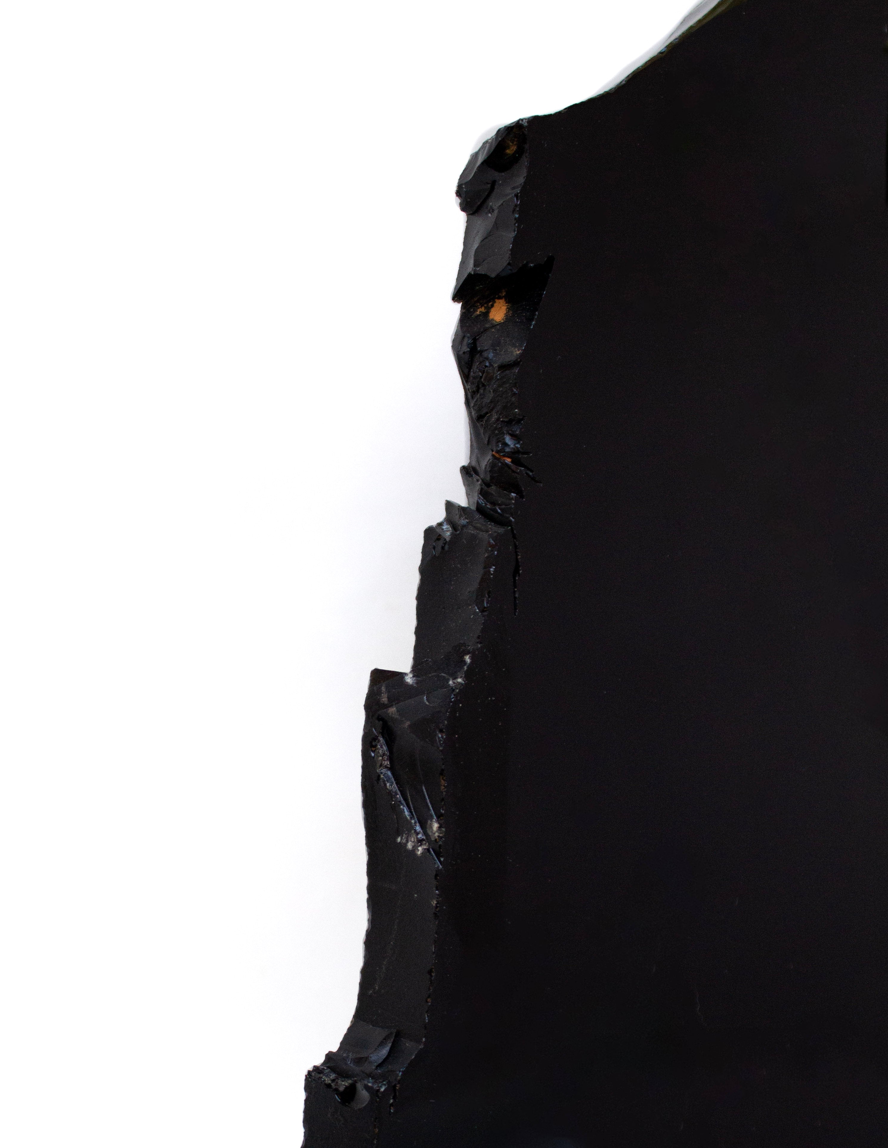 Polished black obsidian mirror with natural forming indentions.