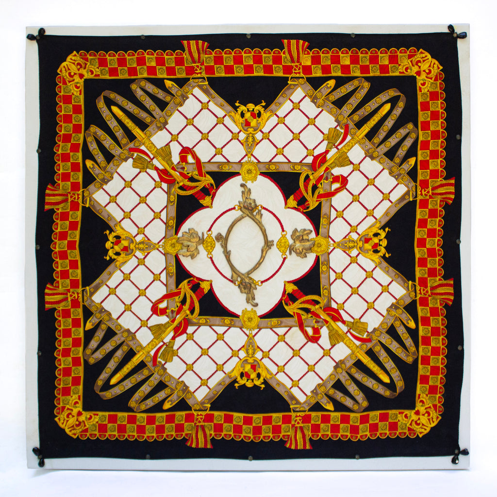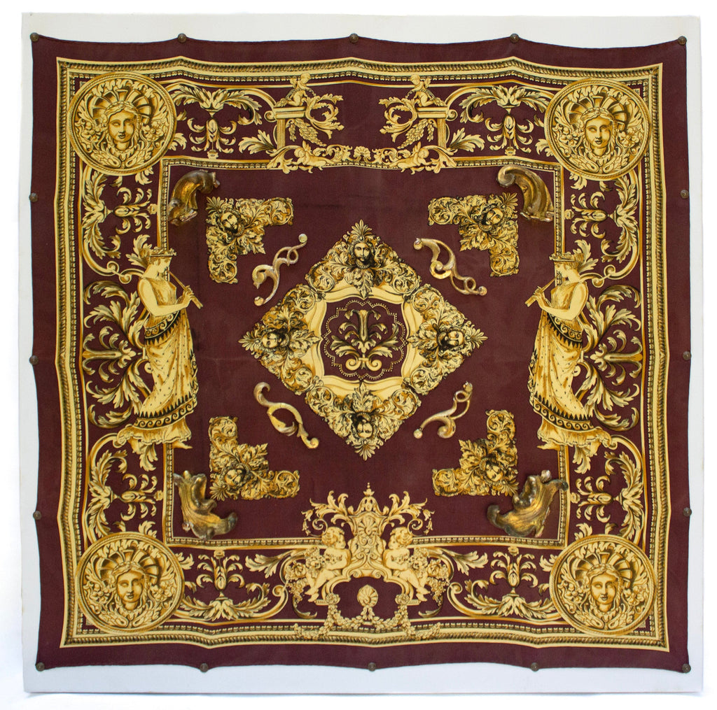 Artistic reliefs combining vintage Italian scarves with 18th century Italian gilded fragments and rare natural specimens on canvas.