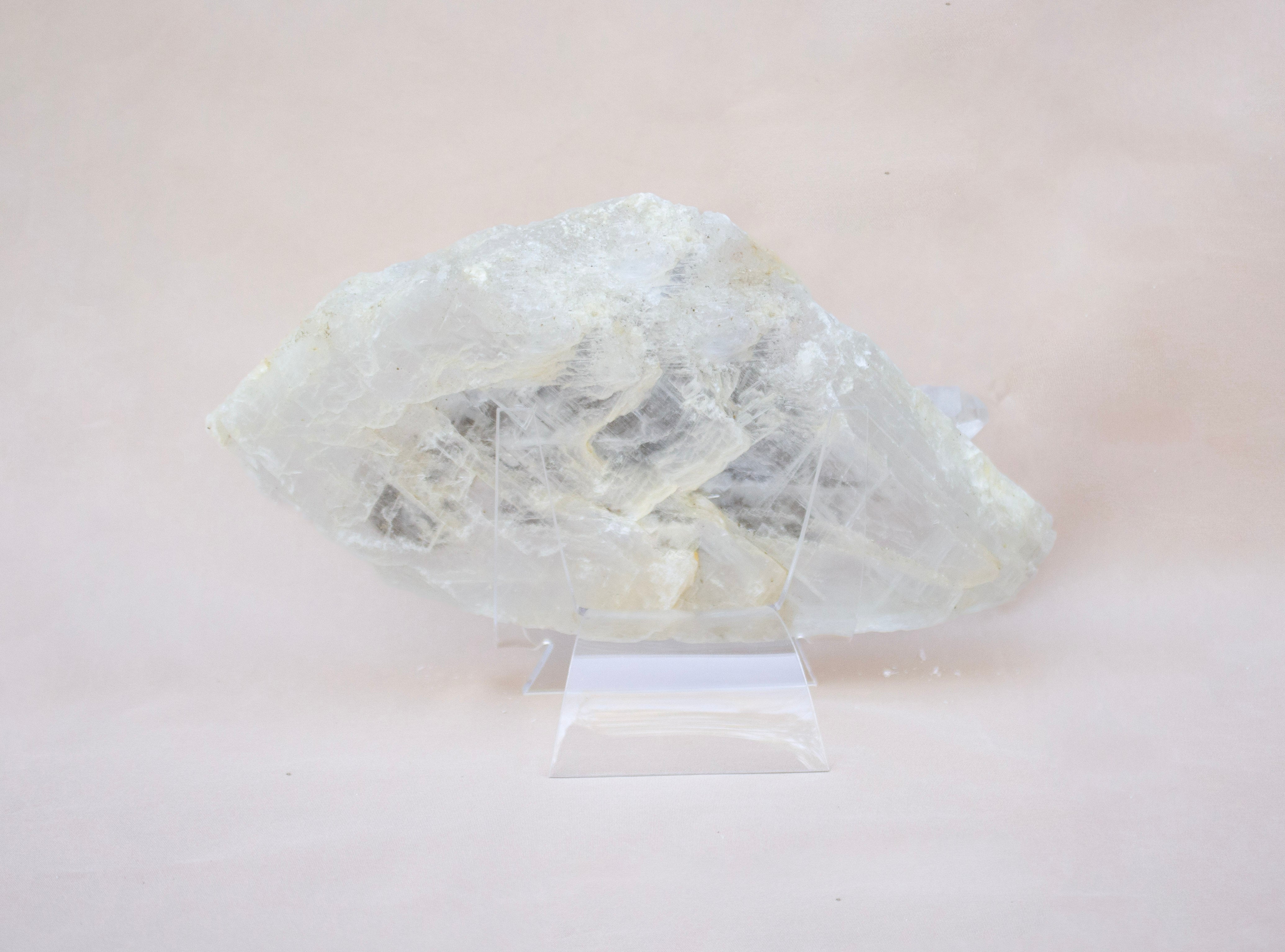 The Italian fragments original came from a historical Italian church. It is adorned with quartz crystals and mounted onto the selenite slab. Selenite is a transparent mineral that is a form of gypsum. It was used to create the windows of the Santa Sabina Basilica in Rome, Italy during the 5th century, hence the name "Window Pane Selenite."