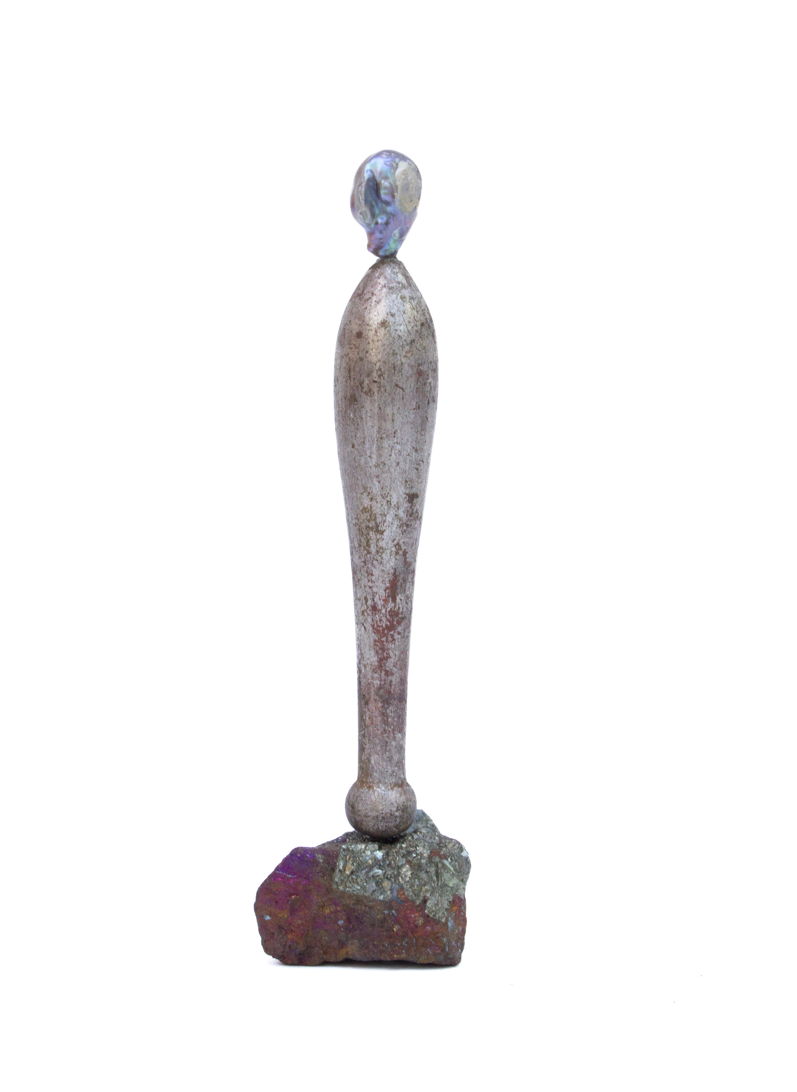 18th century Italian gold leaf tassel decorated with a natural forming, baroque pearl on a chalcopyrite base.