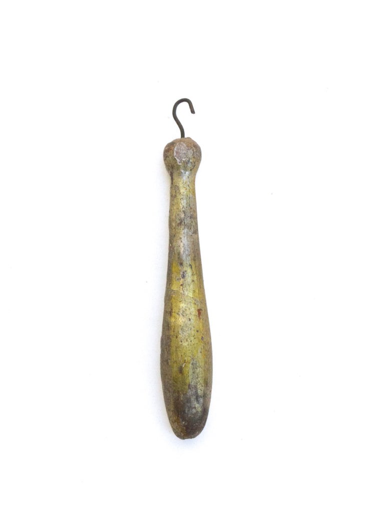 18th century Italian mecca gold-leaf tassel ornament with the original hook. The gilded tassel has naturally distressed over time which creates a beautiful patina to the tassel.