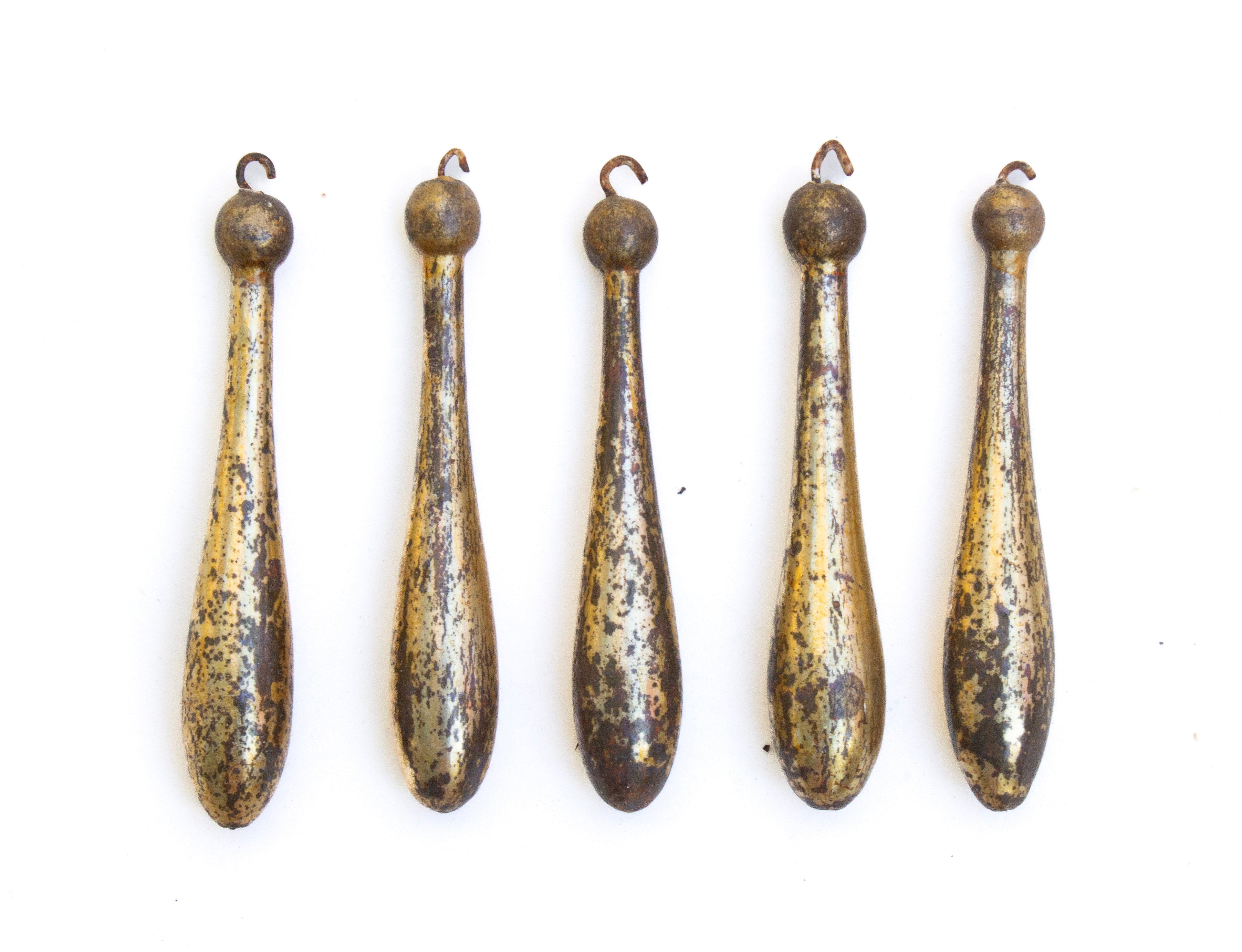 18th century Italian speckled gold-leaf church tassel ornament with original hook. The gilded tassel has naturally distressed over time which creates a unique pattern to the tassel.