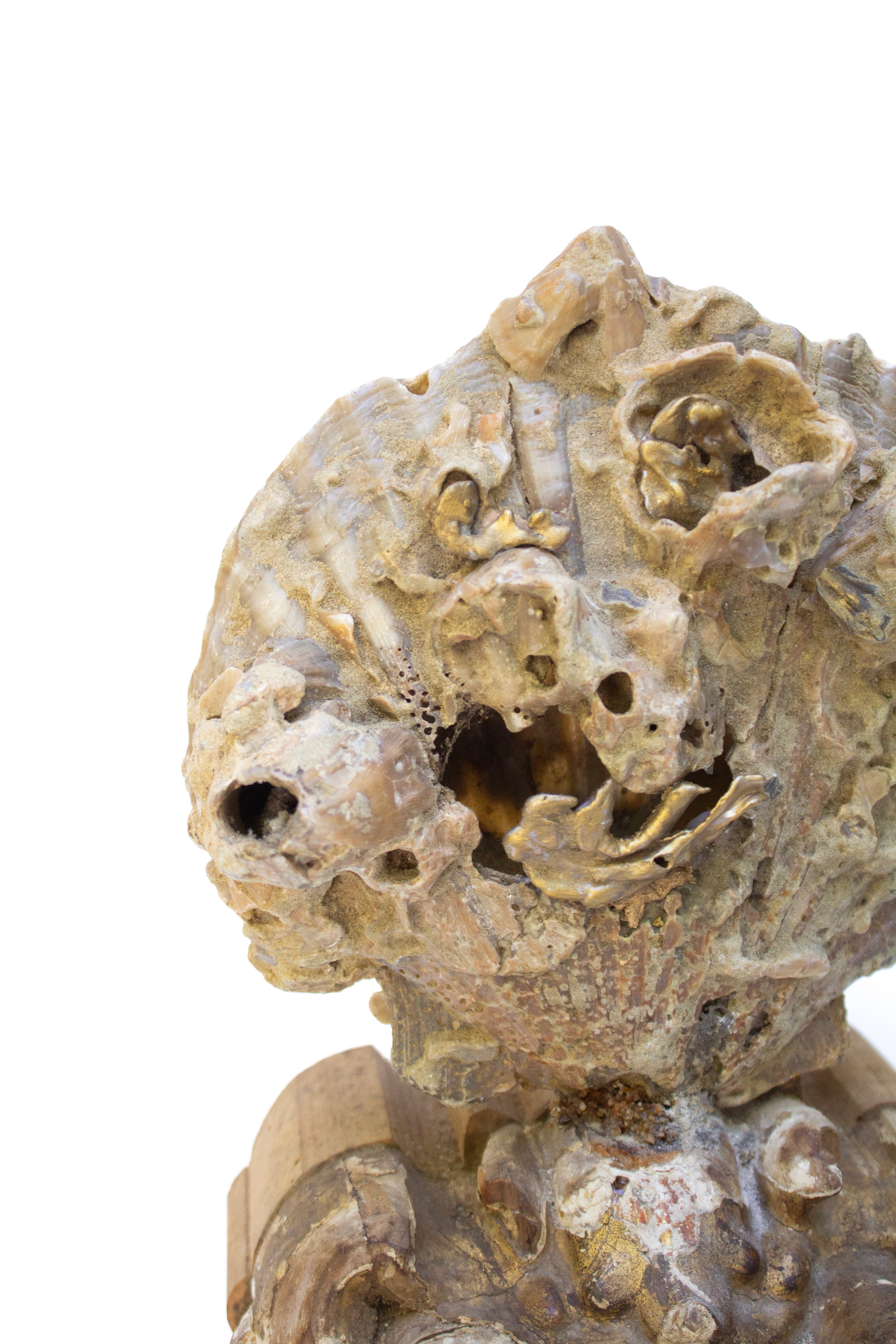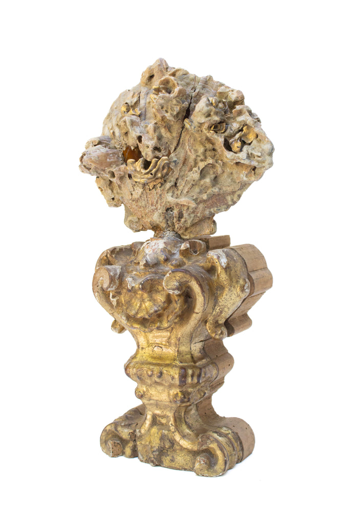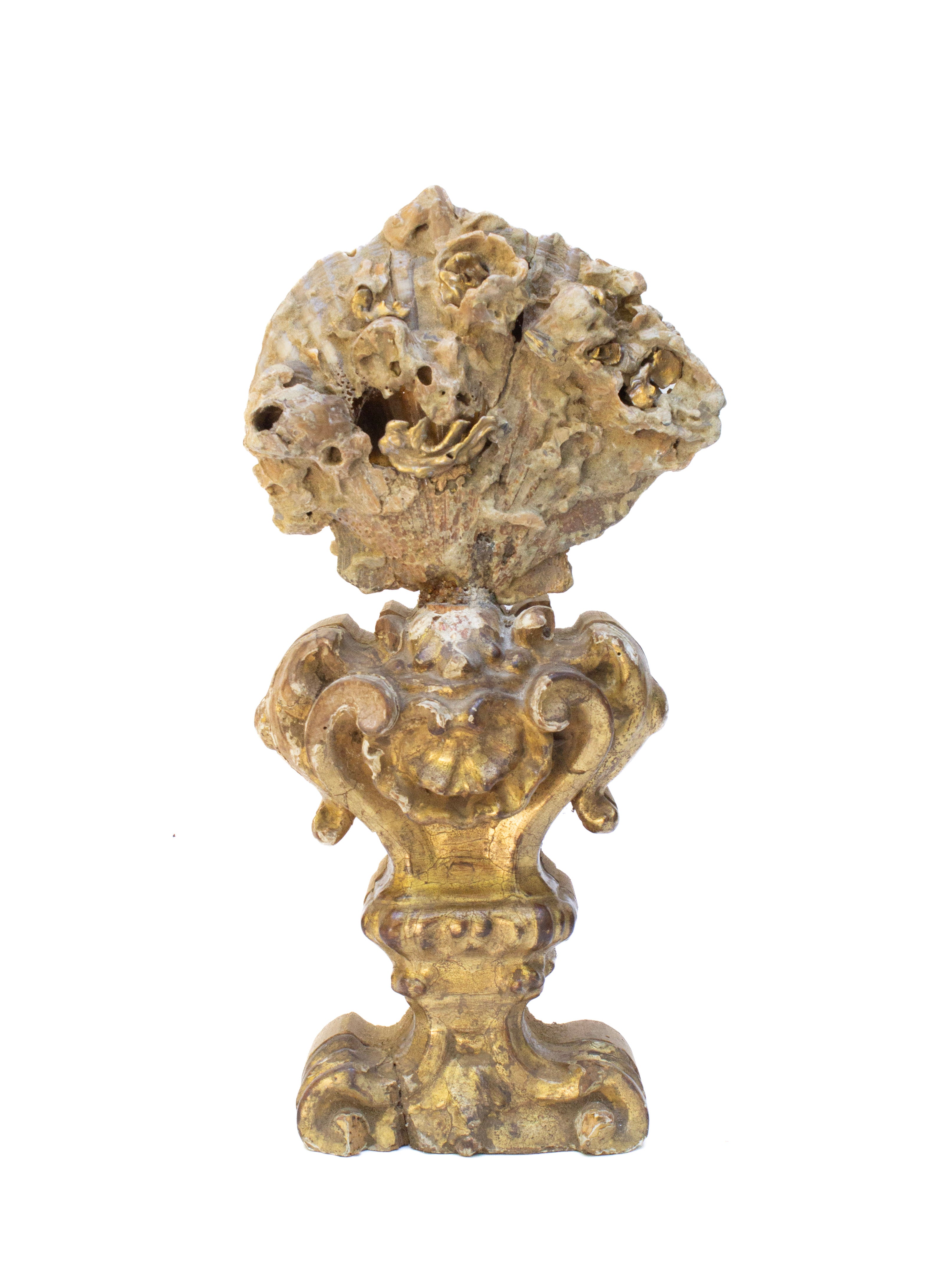 The Italian gilded artifact is preserved and transformed into a work of historic and organic significance with the rare shell formation - creating a historic and organic sculptural work of art.
